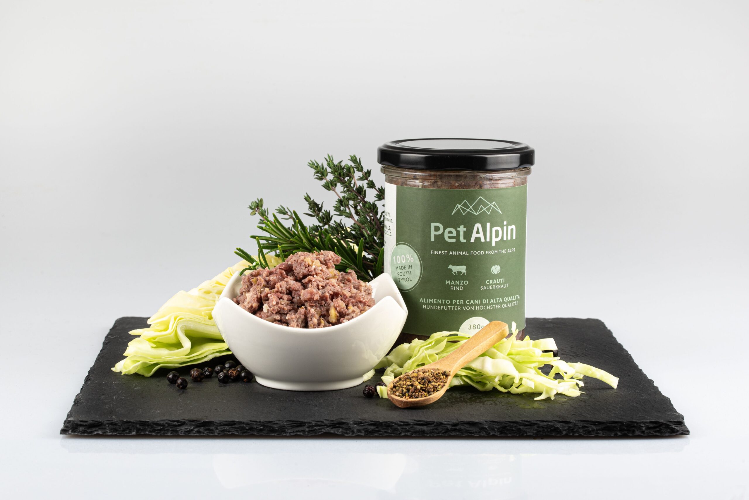 Goulash with beef and sauerkraut is a complete meal for dogs. The ingredients and composition are specially chosen to meet the specific requirements of dogs.. Fresh beef and sauerkraut, from South Tyrolean farms, provide a particularly intense taste experience.